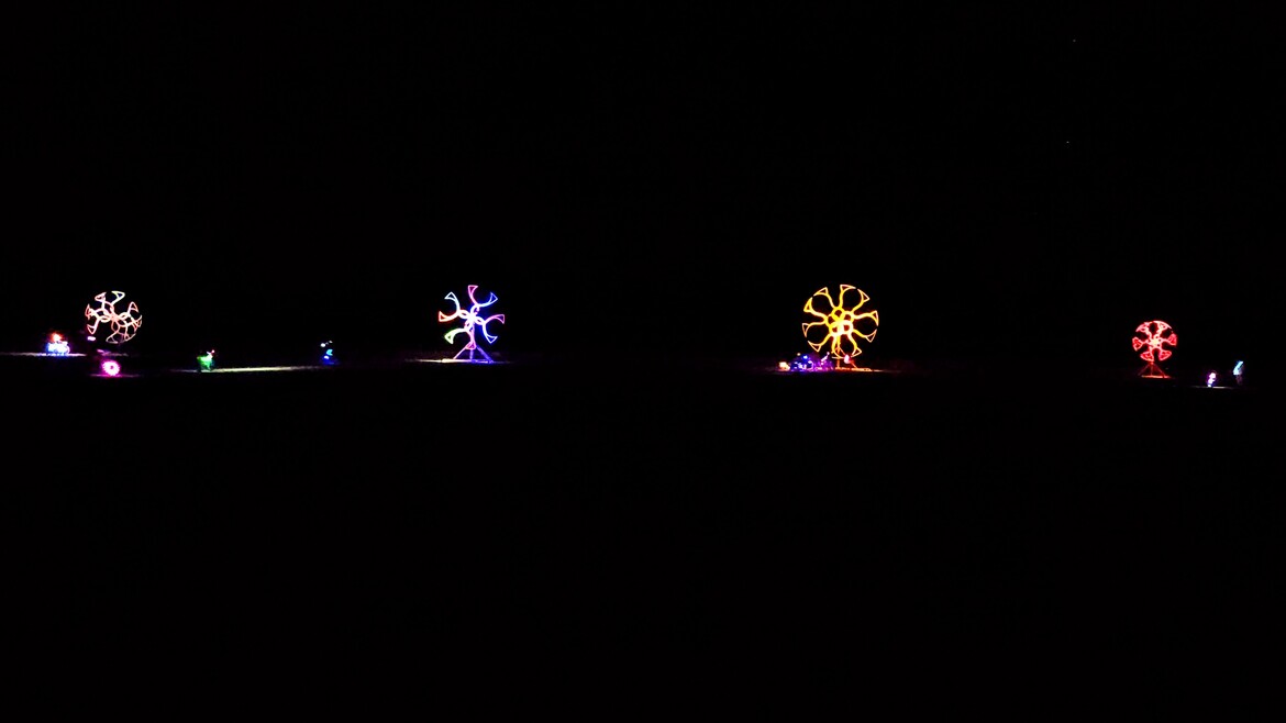 Some call them portals. Some call them illusions. Some claim they were placed there to bend perception, suspend time, or quietly mess with whoever wanders too close. Like any worthy playa legend, the Notorious BIG Spinning Wheels resist definition. They invite projection, reward patience, and reveal just enough to make you wonder whether you are witnessing art, ritual, illusion... or all three at once.