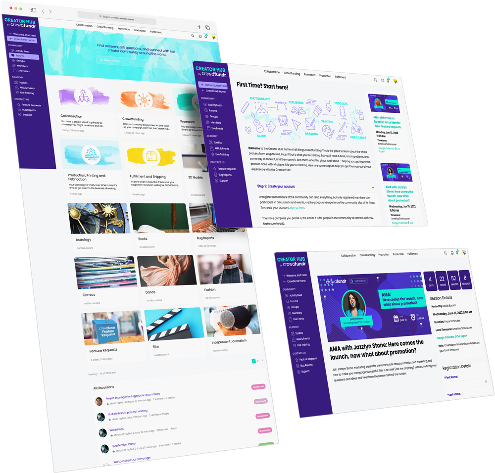 Join Creator HUB to learn and network with fellow creators about crowdfunding, successful project management, and running a creative business.