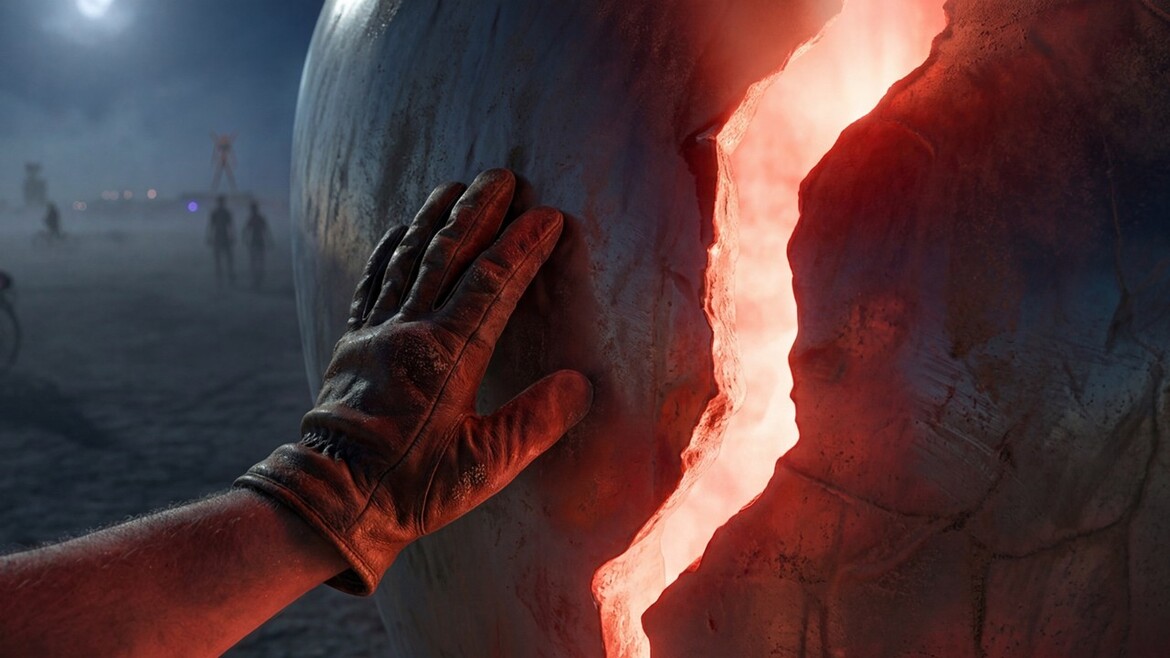 In the silence of the desert night, this heart-shaped sculpture becomes a metaphor for rebirth and unity, echoing the heartbeat of the Earth itself. It symbolizes vulnerability and truth: fragile yet resilient, always inviting introspection rather than escape.