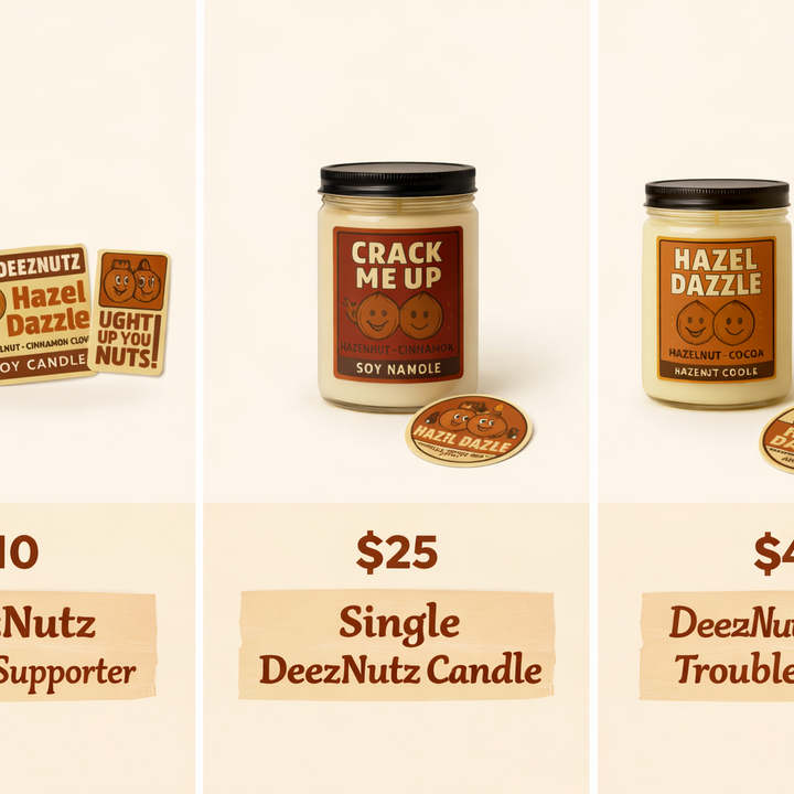 DeezNutz Candles started as a joke, honestly. I love candles, I love good scents, and I love making people laugh. One day it hit me: why not create a candle brand that does all three? Something bold, fun, and memorable—but still high quality and made with care.
