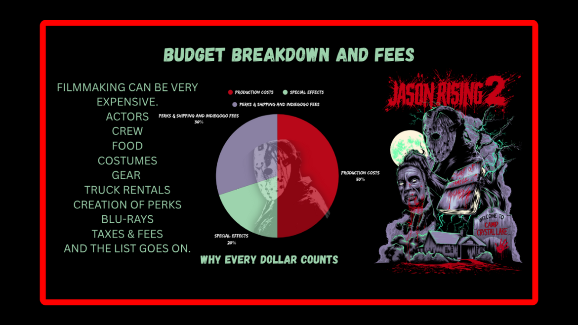 WITH YOUR SUPPORT, WE AIM TO ELEVATE THIS FAN FILM TO NEW HEIGHTS, DELIVERING AN UNFORGETTABLE EXPERIENCE FANS AND NEWCOMERS WILL LOVE. YOUR ROLE IN OUR HORROR COMMUNITY IS CRUCIAL- EVERY CONTRIBUTION, NO MATTER HOW SMALL, IS INTEGRAL IN HELPING US CREATE SOMETHING TRULY SPECIAL. By backing Jason Rising 2, you're not just supporting a film, you're becoming part of a community of horror enthusiasts who share your passion. TOGETHER, LET'S STRIKE FEAR INTO THE HEARTS OF AUDIENCES EVERYWHERE WITH THIS THRILLING CONTINUATION OF A BELOVED FRANCHISE.