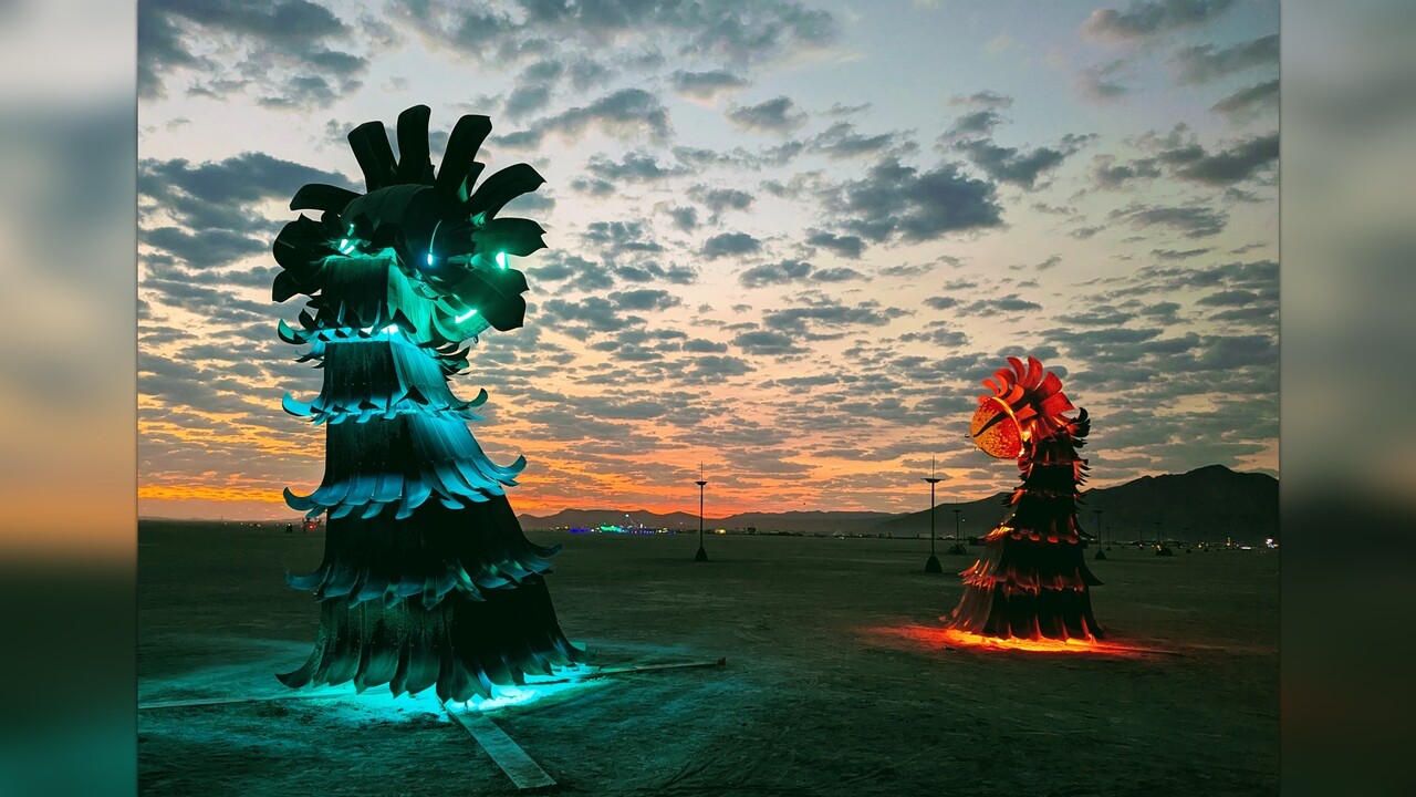 ORBs, are creatures that are visiting planet Earth! With a little steel and stained glass, their earthly bodies will materialize to capture their other dimensional essence. Their.. "Universal Dimensional Essence", to be exact. However, unlike the heavenly dimension they're from, we here on planet earth need cold hard cash in order to construct these suits for our visiting friends. Or rather, our guides. Guides that can help us face the cold.. to be bold, and peer within. With our smallest guide blooming purple atop it's perch, it's demonstrating a being that is "Aware". The medium sized ORB's representation is "Intention", and is demonstrated through it's fiery orange glow. The tallest Orb stands at 19', it's flower is a cool blue and demonstrates "Action". With these three demonstrations in harmony, ORBs really has something to show. To be aware of what really is can change whole worlds. And now that a new world has begun, it's time to put some intention behind our actions.. and not simply do what we've been programmed to do. This is mindless movement.. and is spiritual death.