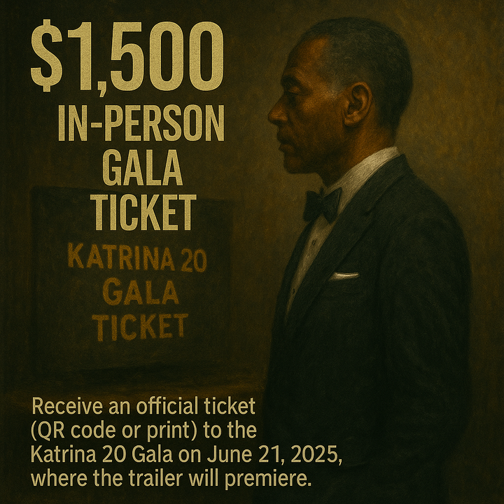 Receive an official ticket (QR code or print) to the Katrina 20 Gala on June 21, 2025, where the Trailer will premiere.