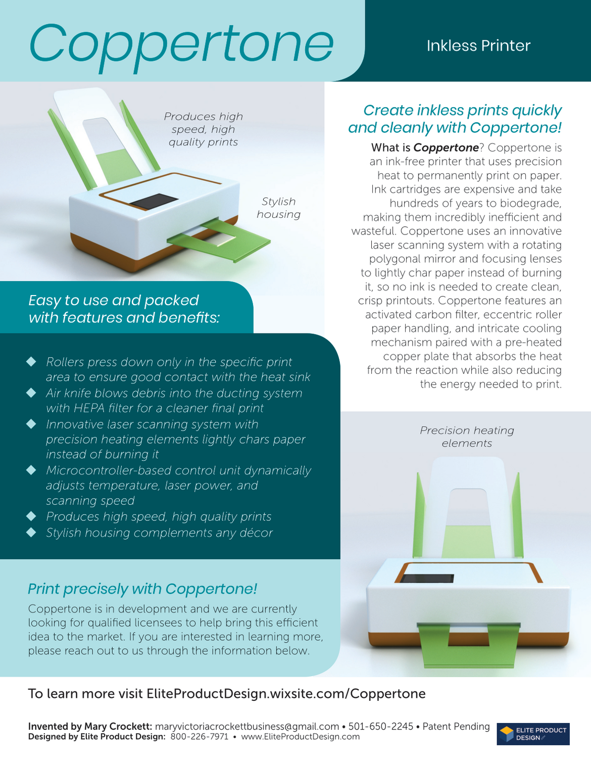 I have designed a commercial inkless printer that can take millions of ink cartridges out of landfills every year and does not need traditional ink or use ink cartridges.
