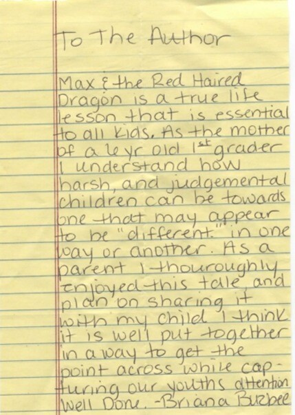 I enjoyed reading "Mama, Why am I Black?" and Max and The Red Haired Dragon."