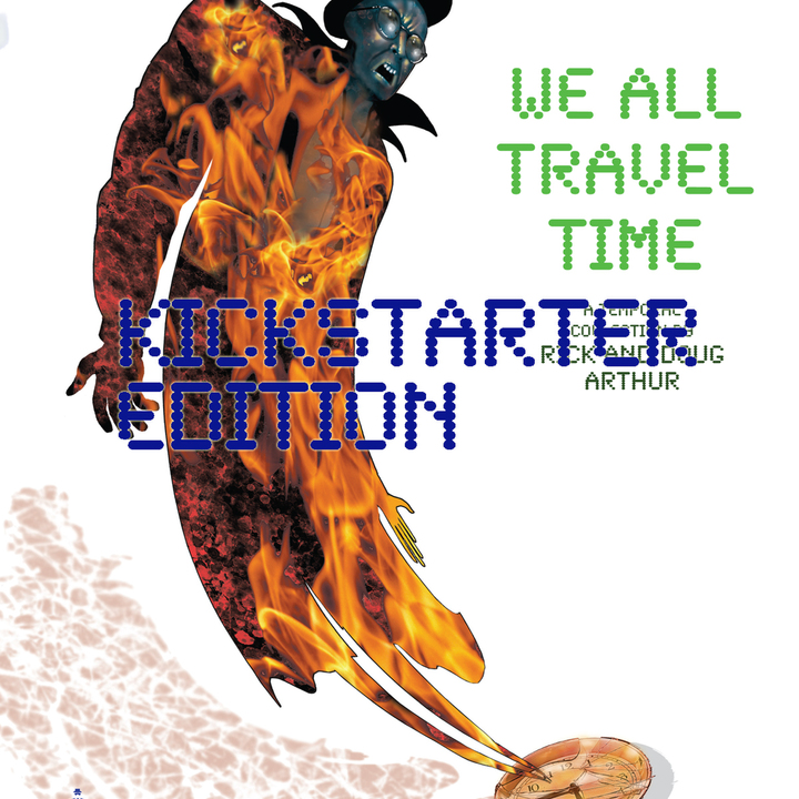 A copy of my 2016 full-color science fiction anthology, We All Travel Time which I collaborated on with my brother (and TMNT writer/artist) Rick Arthur. Released in September of 2016, We All Travel Time collects three of Rick's short stories (Time Travel Means Never Having To Say You're Sorry, One Way To Hell, The Kill), one of mine (At Midnight I Become Invincible), one that we collaborated on, (Fresh From the Garden) and a story of mine that Rick colored (Robert Fripp, Agent of KRIMSON). This is a copy of the expanded Kickstarter edition!