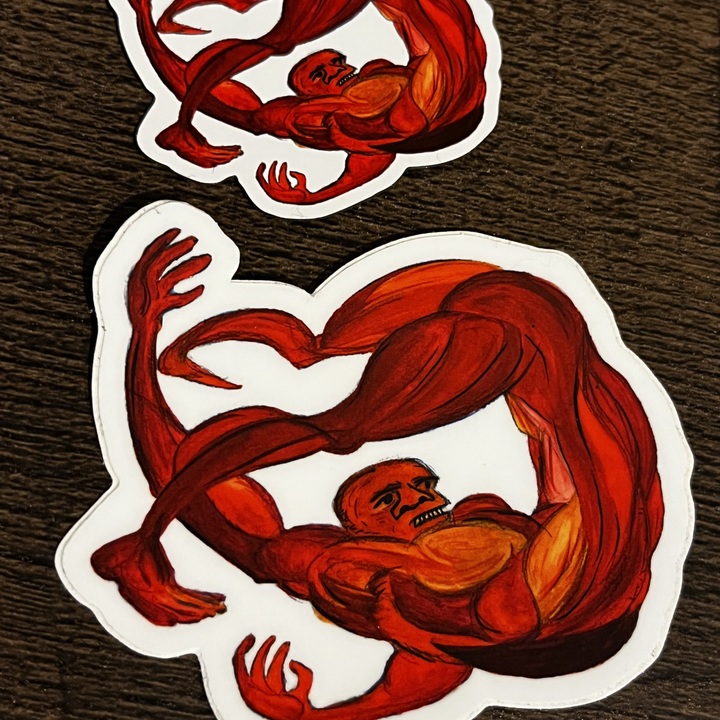 Show off your Dougside pride with this exclusive sticker and magnet set! The die-cut sticker and magnet both feature the contorted character from the front cover of my 2013 book Antisocial Lawnmower!