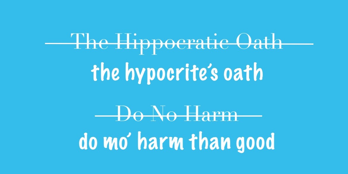 Doctors took a hippocratic oath to do no harm to patients - a stance that should extend to the entirety of the American healthcare system. Let's remind them about that (but theyre a sensitive bunch so we'll use humor to get the point across).