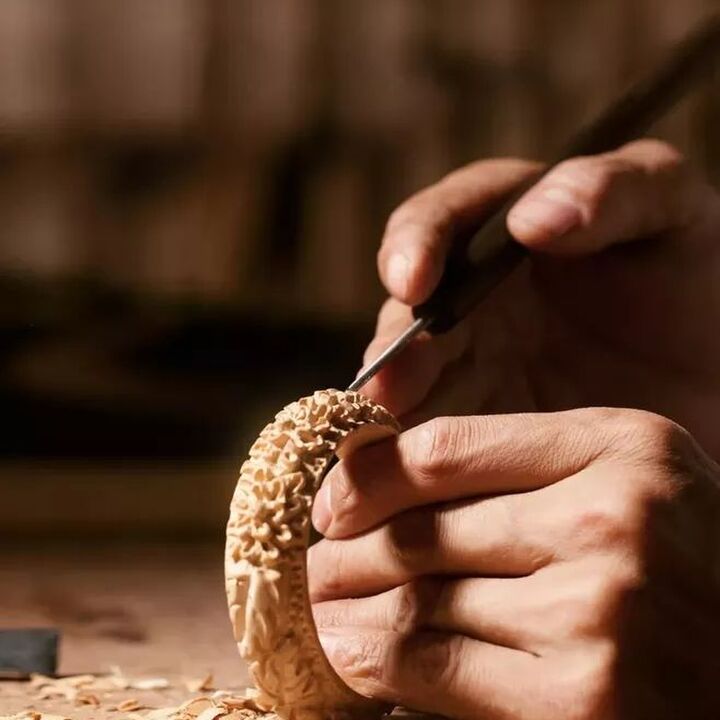 Designed by Linh Trinh and hand-carved from wood by artisans in Hoi An, its symbol holds the key to the unravelling of the forgotten story at the heart of this piece.