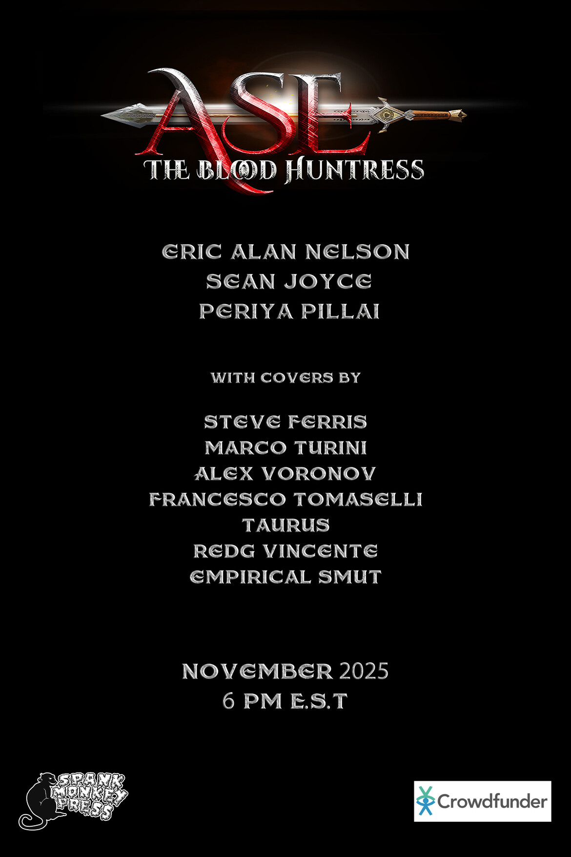 • Each backer to any physical tier will receive the PDF of "Ase: The Blood Huntress" #3 for FREE with your donation!