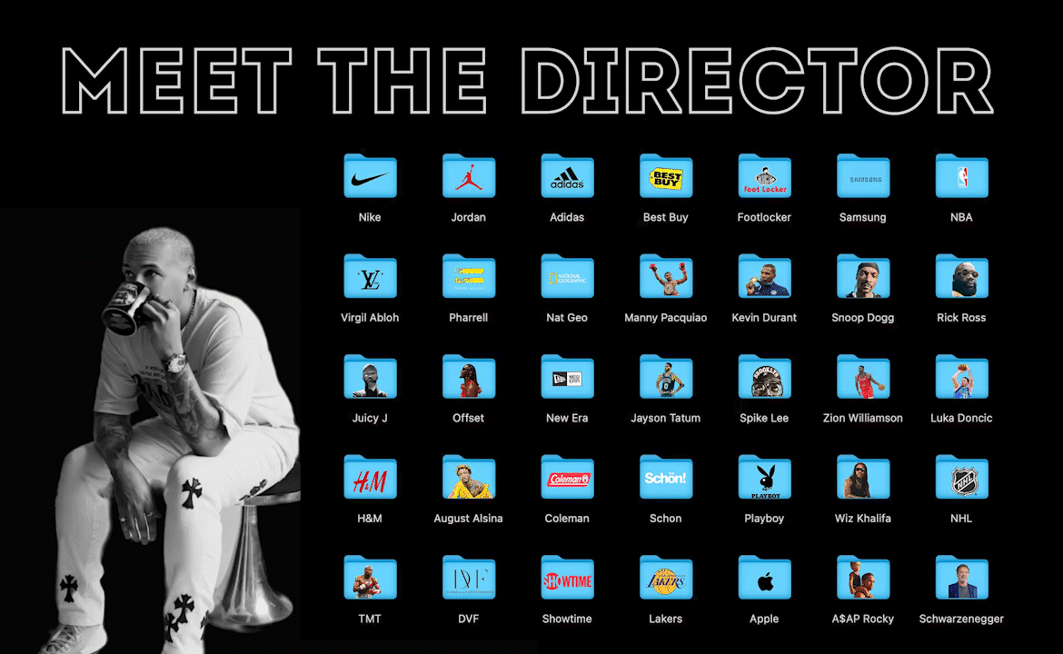 I’m a Los Angeles based filmmaker, originally from Indianapolis, Indiana. Over the years I’ve directed more than 600 projects. Music videos, commercials, documentaries, and fashion films and I’ve been fortunate to collaborate with people and brands like Pharrell Williams, Vogue, Karl Lagerfeld, Nike, Adidas, Dolce & Gabbana, A$AP Rocky, and Snoop Dogg.