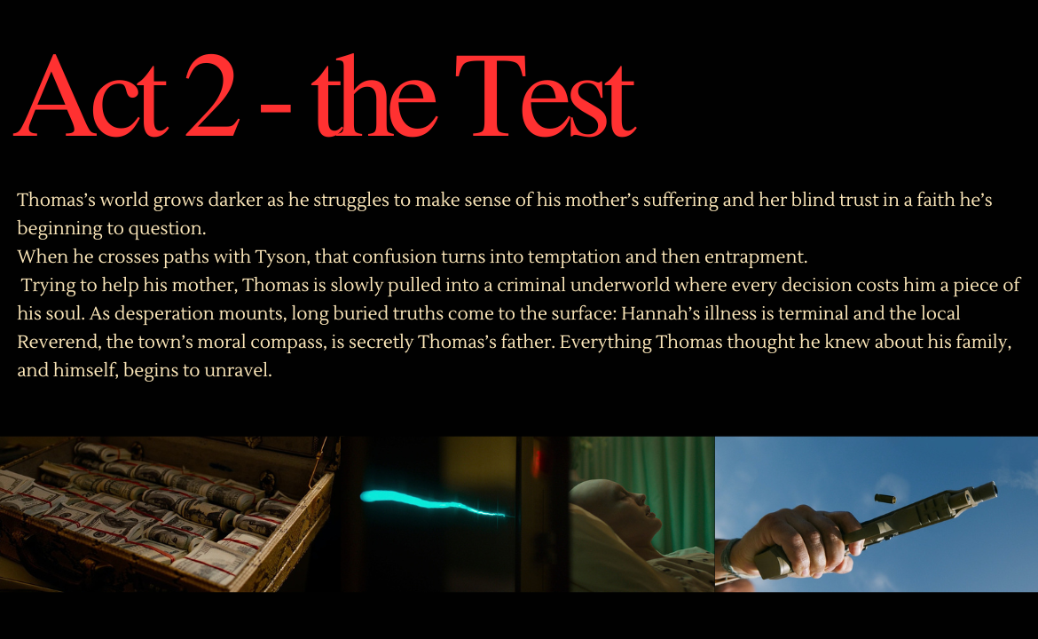 This 5 minute visual piece is a cinematic collage built from existing movies, it blends key scenes, performances, music, and imagery to emotionally and stylistically communicate the world of Hannah’s Son.