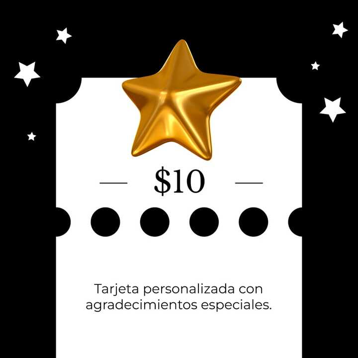 - $10 – Tarjeta personalizada con agradecimientos especiales.