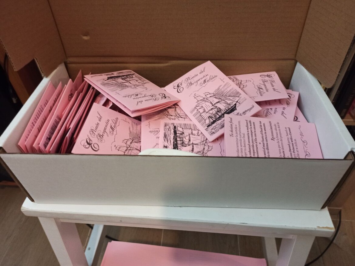 - EL PIRATA DEL BERGANTÍN MALDITO: Hoja A4, una cara, B/N, plegado en Pocketfold, papel de colores 80g