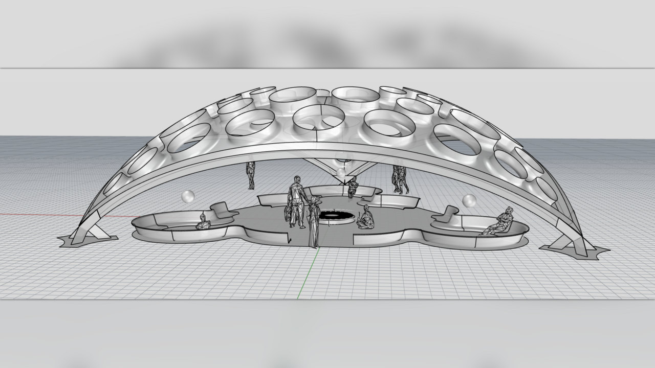 EyeToTheSky is a new art installation headed to Burning Man 2025 - its a canopy made of molded plywood - with a central light artwork made of glass and steel in the form of a human iris pointed to the sky - with many places to sit and relax - a living ...