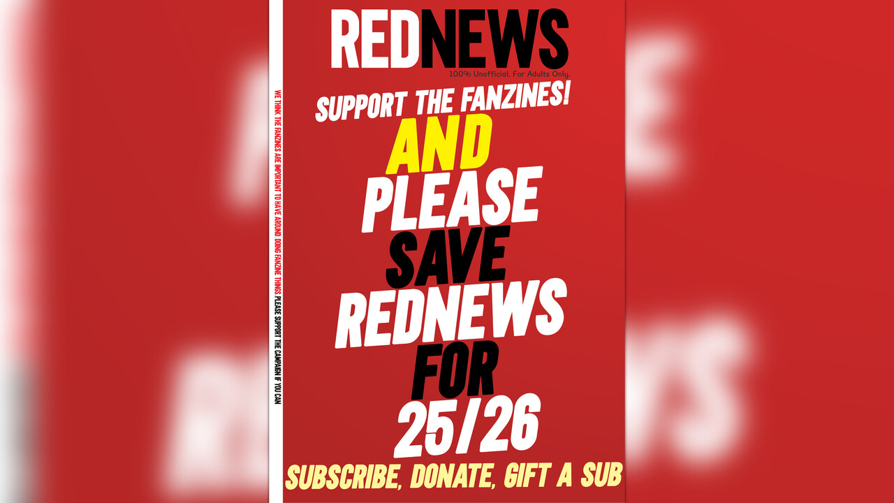 Support YOUR FANZINES & Save RedNews - Fanzines are as important as ever because fan issues are as important as ever. 425 subscribers needed to SAVE the fanzine for 25/26. Help us print on with our unique fanzine, independent, YOUR voices. Thank you.