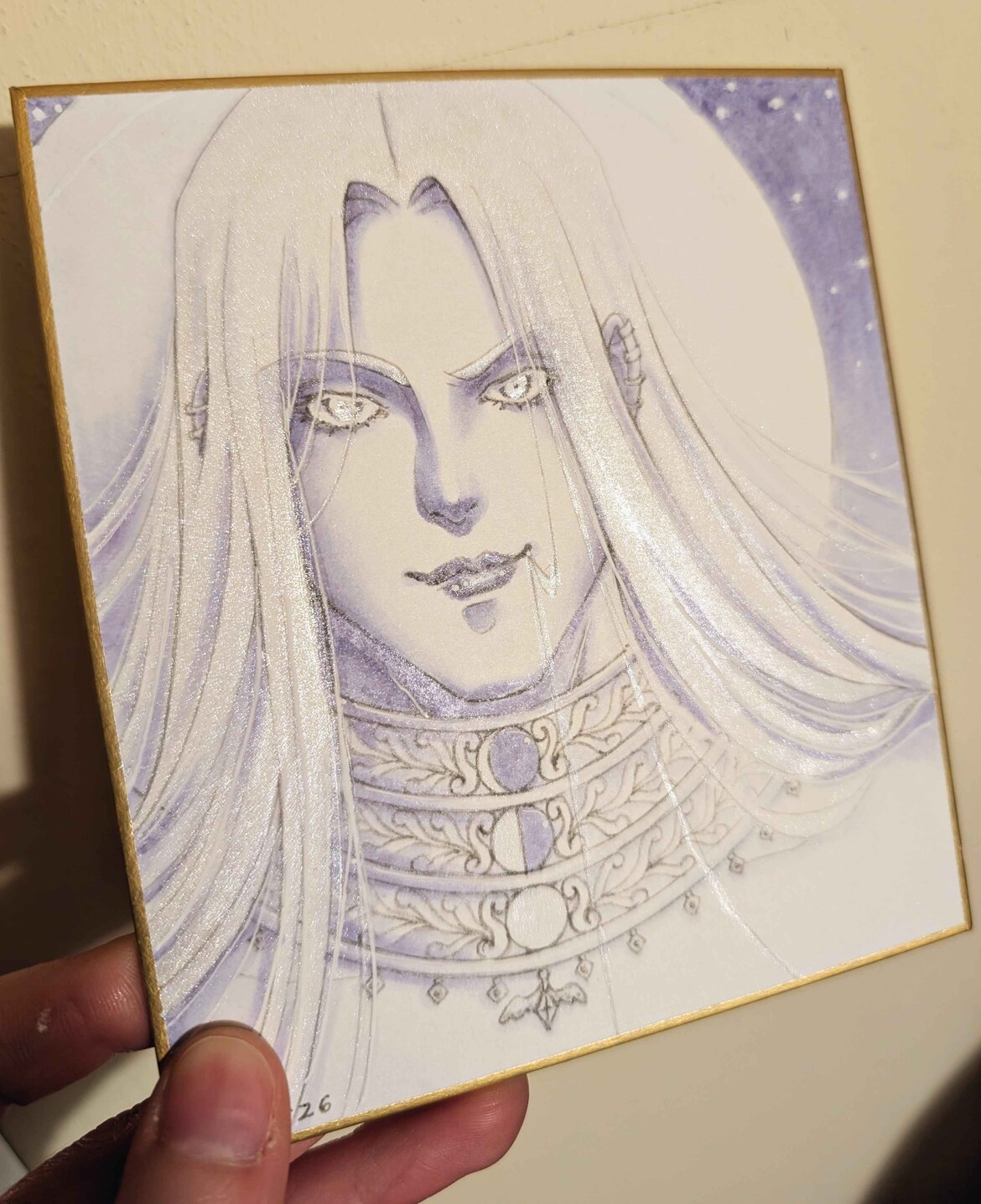 Everyone who orders at least one physical book from this campaign will be eligible to win a shikishi board from LAB of the Night Prince himself! Look at how shimmery he is! LAB also has a commission tier if you'd like a custom shikishi board for yourself — TIER SOLD OUT!