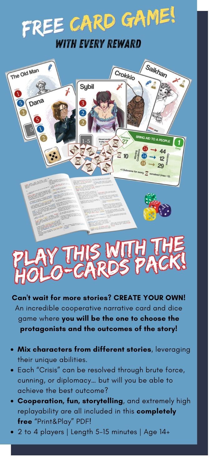 - 5 Crisis cards to resolve, with increasing difficulty;