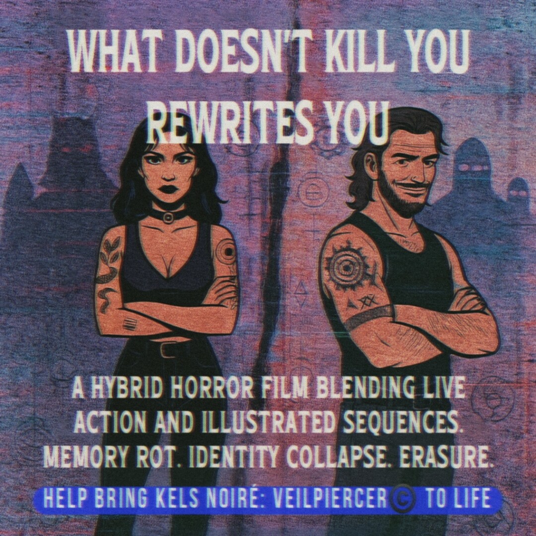 Based in the same universe as my published book, Kels Noiré: Dream Architect – Book I: A Ritual in Dream Syntax, Veilpiercer (Copyright ©️ 2025 All Rights Reserved) is a surreal, psychological horror film about a dreamwalker unraveling the truth behind a multidimensional cult, her erased identity, and a cosmic war beneath waking reality.