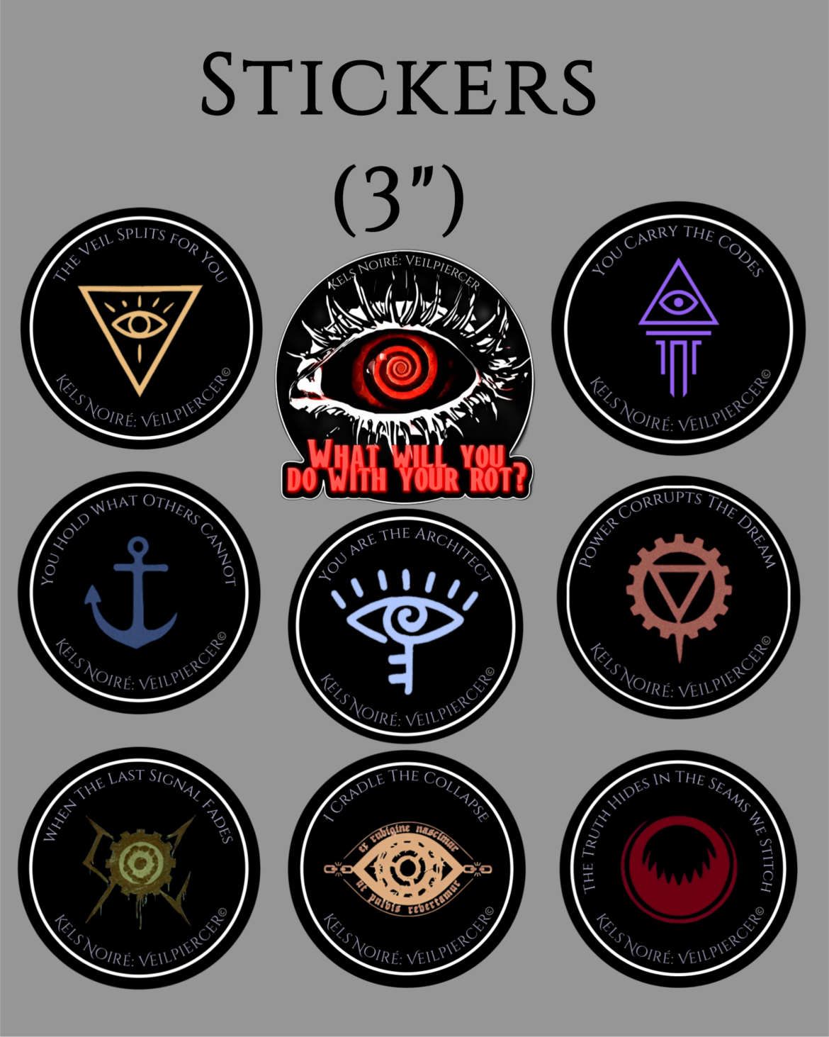 -Sticker with red spiral eye "What will you do with your rot?"